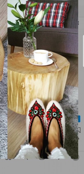 Kapcie są bardzo ciepłe i wygodne. Podeszwa kapci jest wykonana z naturalnej skóry,która jest wytrzymała a zarazem bardzo zdrowa dla stóp.
