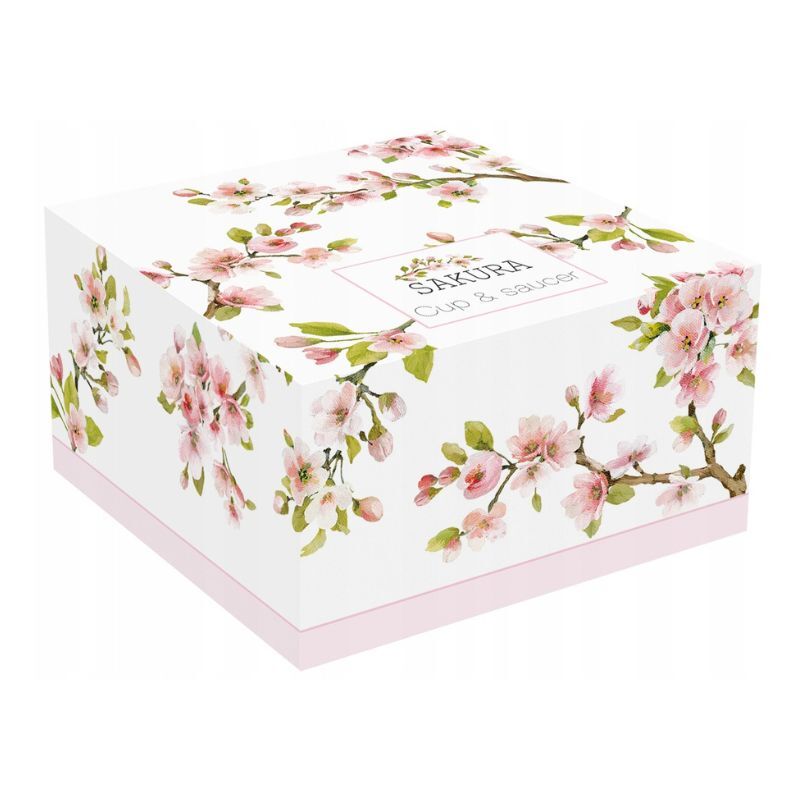 Filiżanka umieszczona jest w eleganckim pudełku, posiadający ten sam wzór.