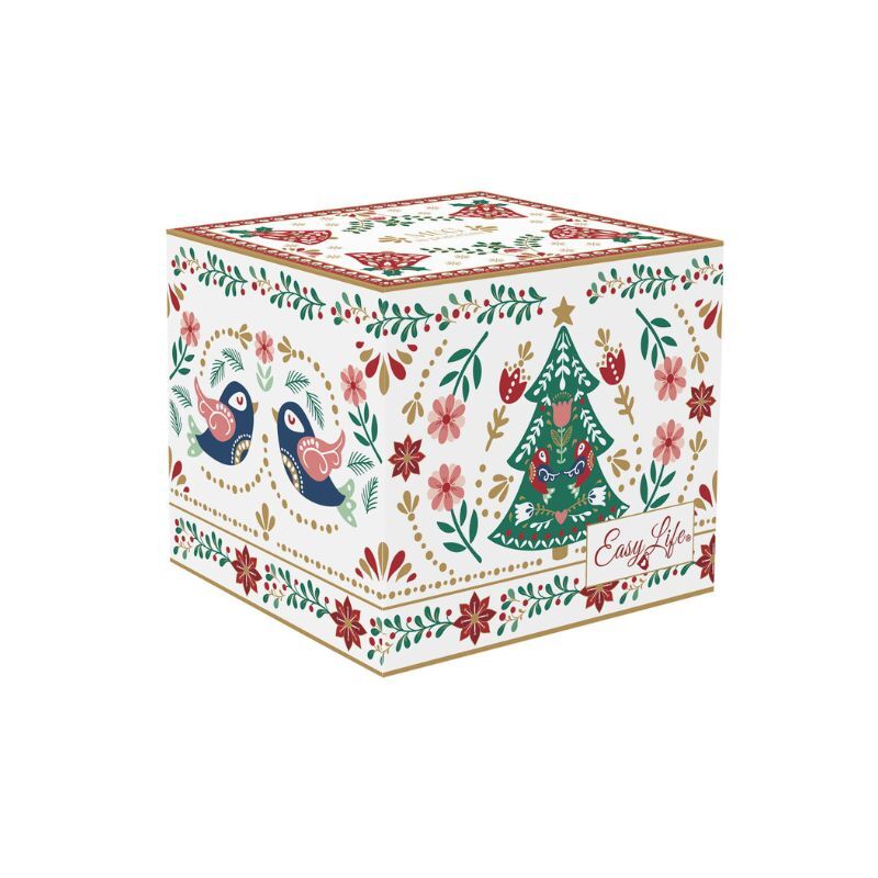 Porcelanowy, niski kubek o prostym kształcie z oryginalnej, świątecznej kolekcji.