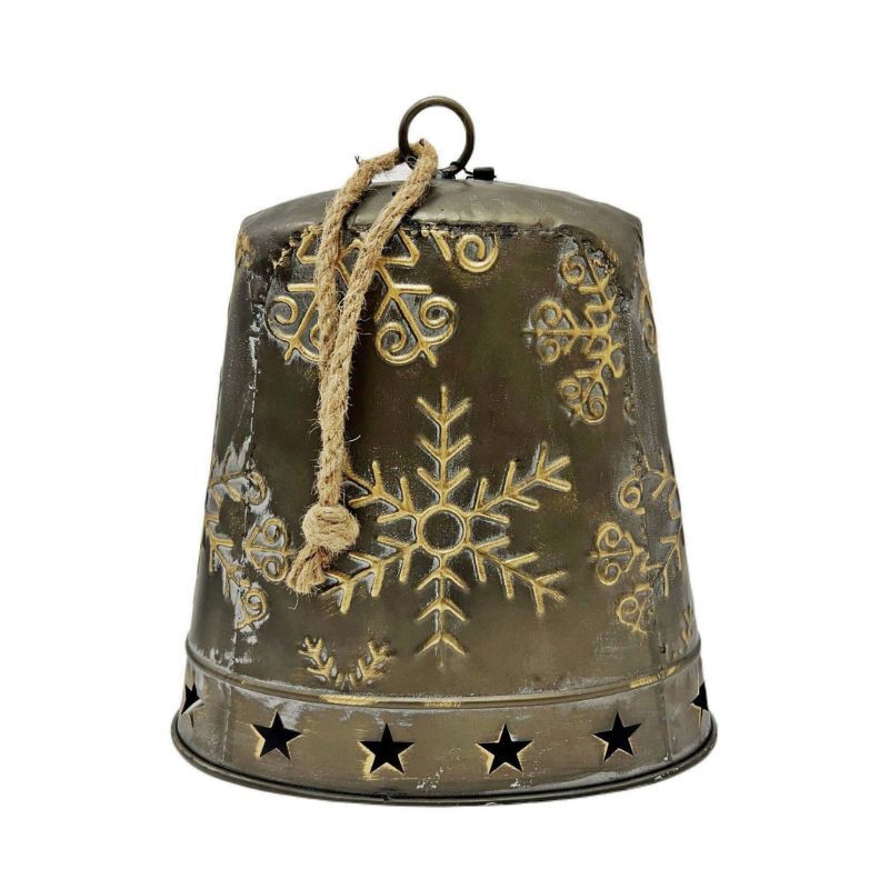 Wprowadź do swojego domu wyjątkowy, rustykalny klimat dzięki temu metalowemu dzwonowi ozdobnemu. Wykonany z trwałego metalu, zdobiony tłoczonymi złotymi płatkami śniegu, stanowi piękną i stylową dekorację na okres zimowy i świąteczny. Dzwon posiada jutowy sznurek, który nadaje mu naturalnego charakteru i umożliwia łatwe zawieszenie.