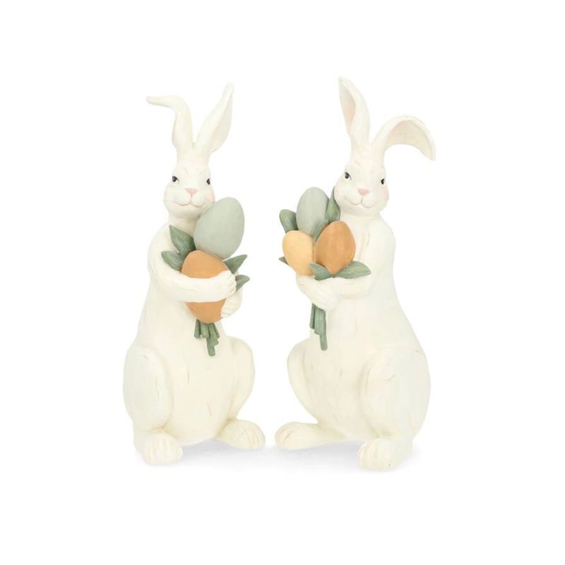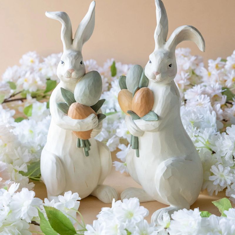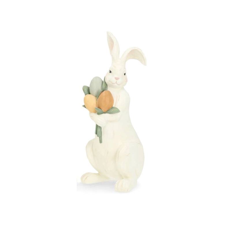Dekoracyjna figurka królik z wiosennymi kwiatami.
