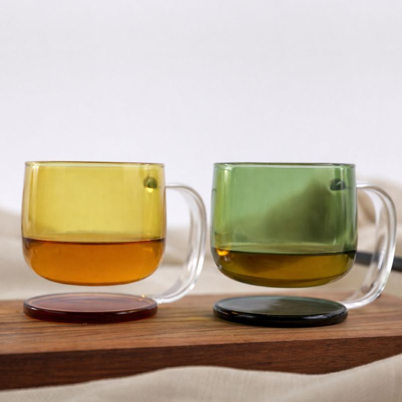 Nietypowa konstrukcja sprawia, że naczynie opiera się na górnej części ucha i jest połączone z podstawą w taki sposób, że dno nie dotyka bezpośrednio blatu. Dzięki temu szklanka nie odparza drewnianych ani delikatnych powierzchni i może być stawiana bez użycia podkładek. Szerokie, ergonomiczne ucho sprawia, że kubek pewnie i bardzo wygodnie leży w dłoni.
