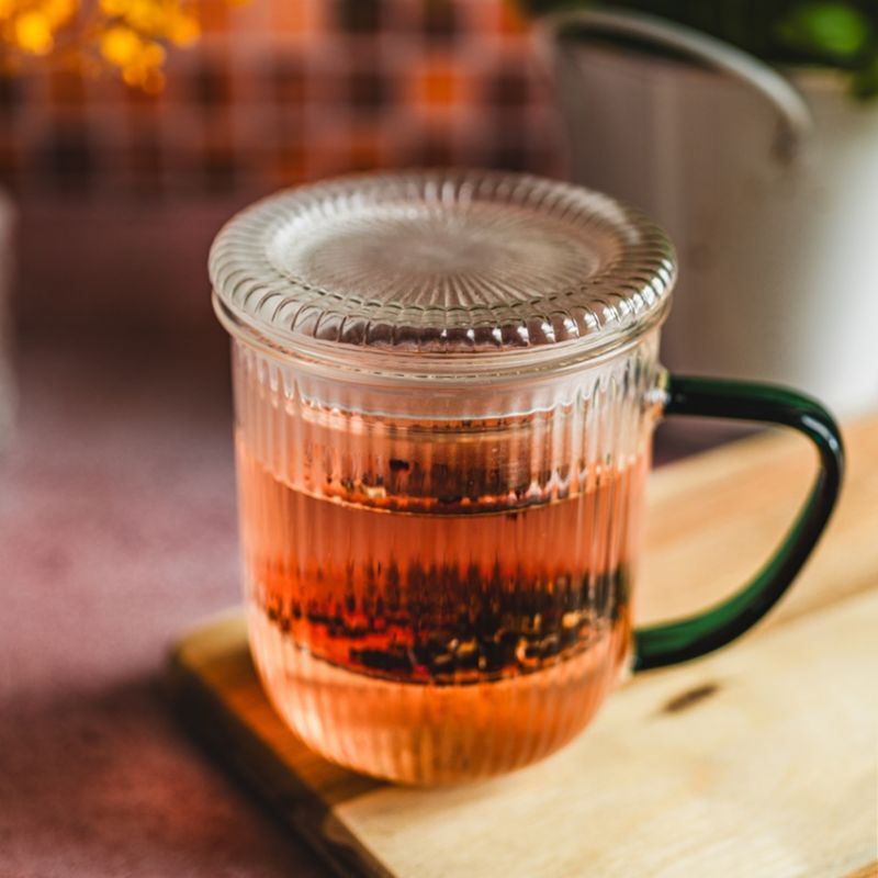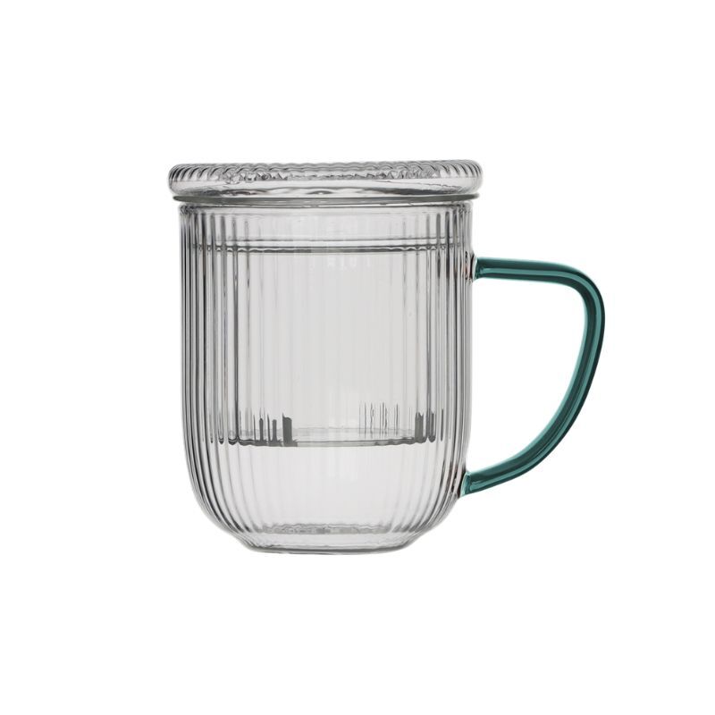 Wykonana ze szkła borokrzemowego, które jest odporne na wysoką temperaturę. Zaletą szkła borokrzemowego jest większa odporność na różnego rodzaju zadrapania i uszkodzenia niż w przypadku tradycyjnego szkła. Idealna do gorących i zimnych napojów, świetnie sprawdzi się o każdej porze roku. Szklanka posiada strukturę pasków, która z pewnością wzbudzi zachwyt gości i domowników. Wyposażona jest w szklaną pokrywkę oraz filtr na herbatę, co czyni ją idealnym wyborem dla miłośników herbaty.