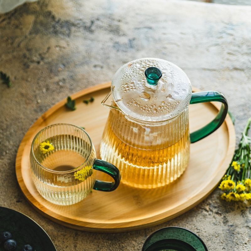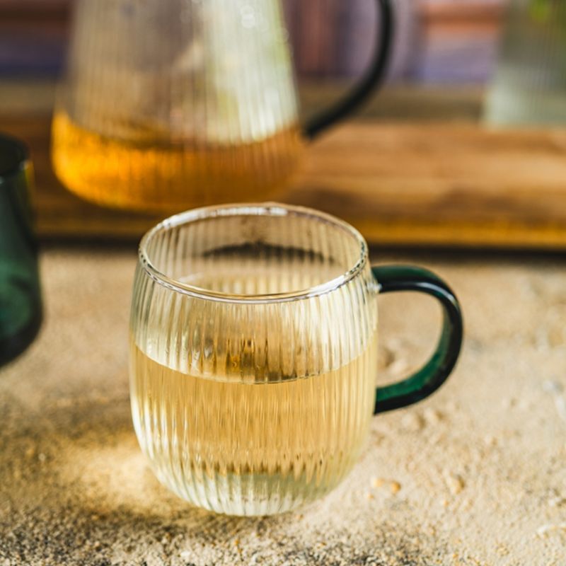 Szklanka z uchem w kolorze zielonym, wykonana ze szkła borokrzemowego, które jest odporne na wysoką temperaturę. Zaletą szkła borokrzemowego jest większa odporność na różnego rodzaju zadrapania i uszkodzenia niż w przypadku tradycyjnego szkła. Doskonała do gorących i zimnych napojów, sprawdzi się o każdej porze roku. Struktura paskowa szkła z pewnością wzbudzi zachwyt gości i domowników.