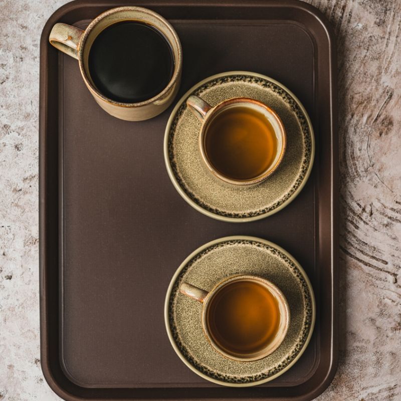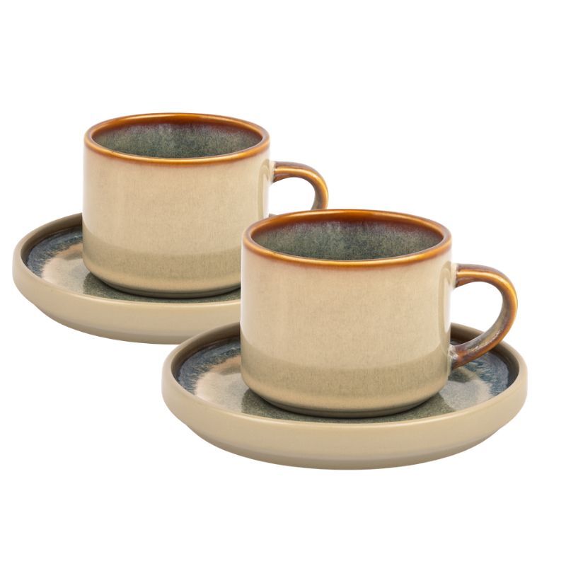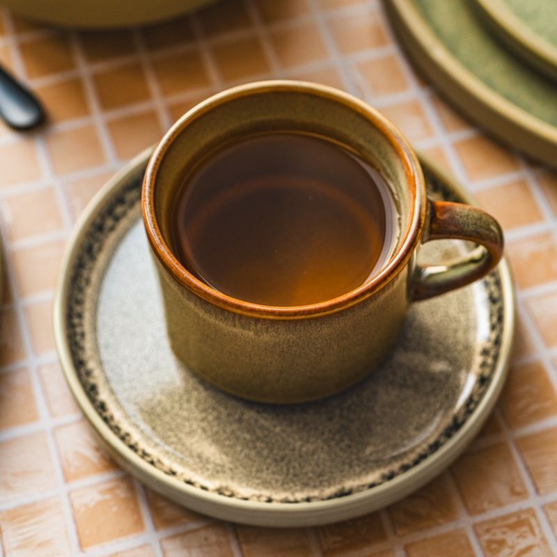Szkliwo jest lekko nieregularne, dzięki temu każda filiżanka ma unikalny, rzemieślniczy charakter. Całość ma matowo-połyskujące wykończenie.